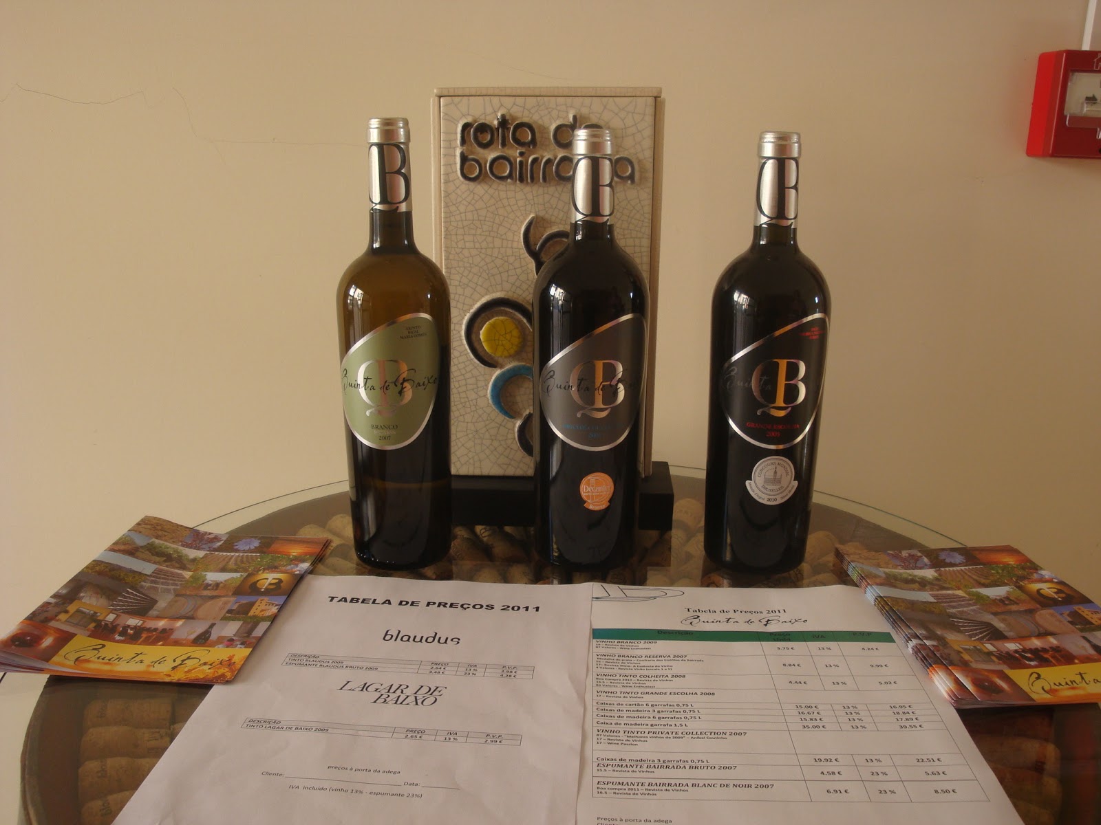 Espumante Bruto 2008; Espumante Blanc de Noirs 2007; Branco Reserva 2007; Blaudus 2004, um 100% Touriga Nacional; QB Grande Escolha 2008.